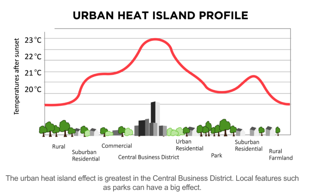 - Increase the ‘Albedo’ effect, by whitening surfaces, so that the heat reflects and is not absorbed;